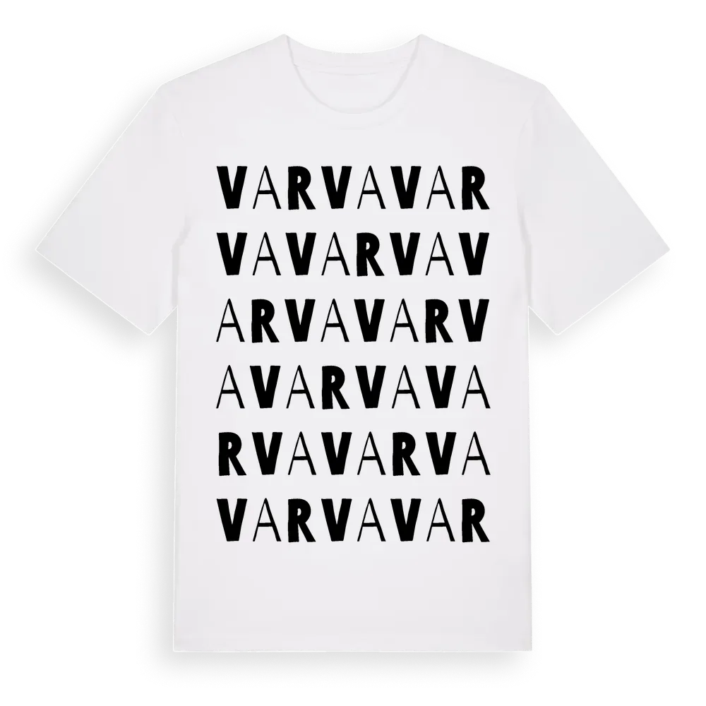 Varva ordlek t-shirt är inspirerad av Varva i Gävleborgs län, Sverige. Tröjan är designad för dig som har en speciell koppling till platsen – oavsett om du bor här, har rötterna här eller bara älskar Varva.