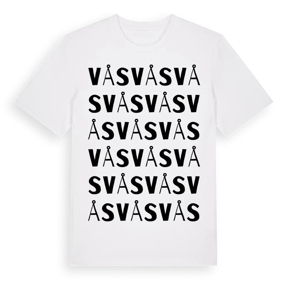 Vås ordlek t-shirt är inspirerad av byn Vås i Gävleborgs län, Sverige. Tröjan är designad för dig som har en speciell koppling till platsen – oavsett om du bor här, har rötterna här eller bara älskar Vås.