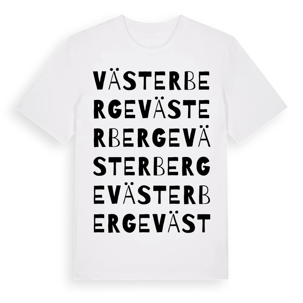 Västerberge ordlek t-shirt är inspirerad av byn Västerberge i Gävleborgs län, Sverige. Tröjan är designad för dig som har en speciell koppling till platsen – oavsett om du bor här, har rötterna här eller bara älskar Västerberge.