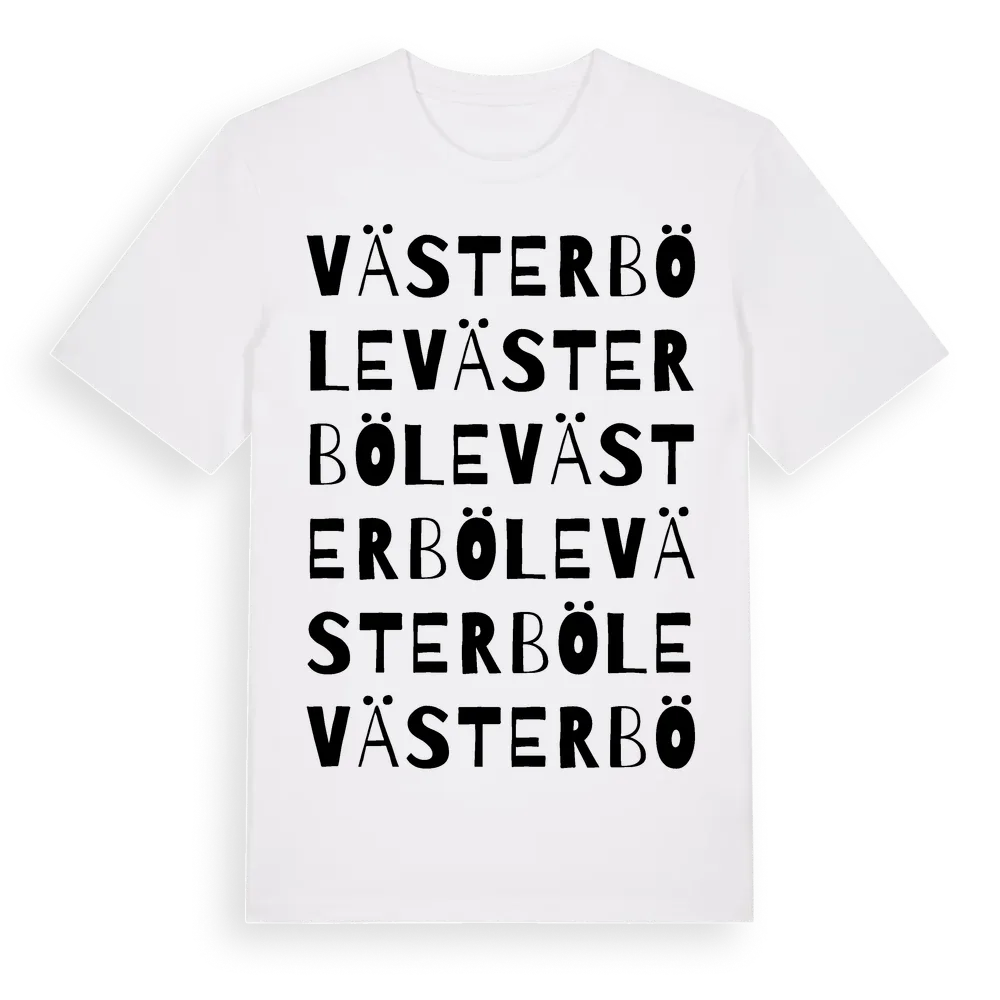 Västerböle ordlek t-shirt är inspirerad av byn Västerböle i Gävleborgs län, Sverige. Tröjan är designad för dig som har en speciell koppling till platsen – oavsett om du bor här, har rötterna här eller bara älskar Västerböle.