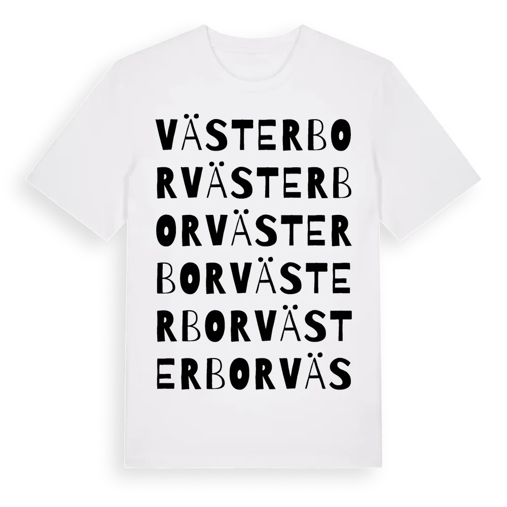 Västerbor ordlek t-shirt är inspirerad av stadsdelen Västerbor i Gävleborgs län, Sverige. Tröjan är designad för dig som har en speciell koppling till platsen – oavsett om du bor här, har rötterna här eller bara älskar Västerbor.