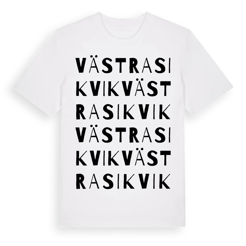 Västra Sikvik ordlek t-shirt är inspirerad av stadsdelen Västra Sikvik i Gävleborgs län, Sverige. Tröjan är designad för dig som har en speciell koppling till platsen – oavsett om du bor här, har rötterna här eller bara älskar Västra Sikvik.