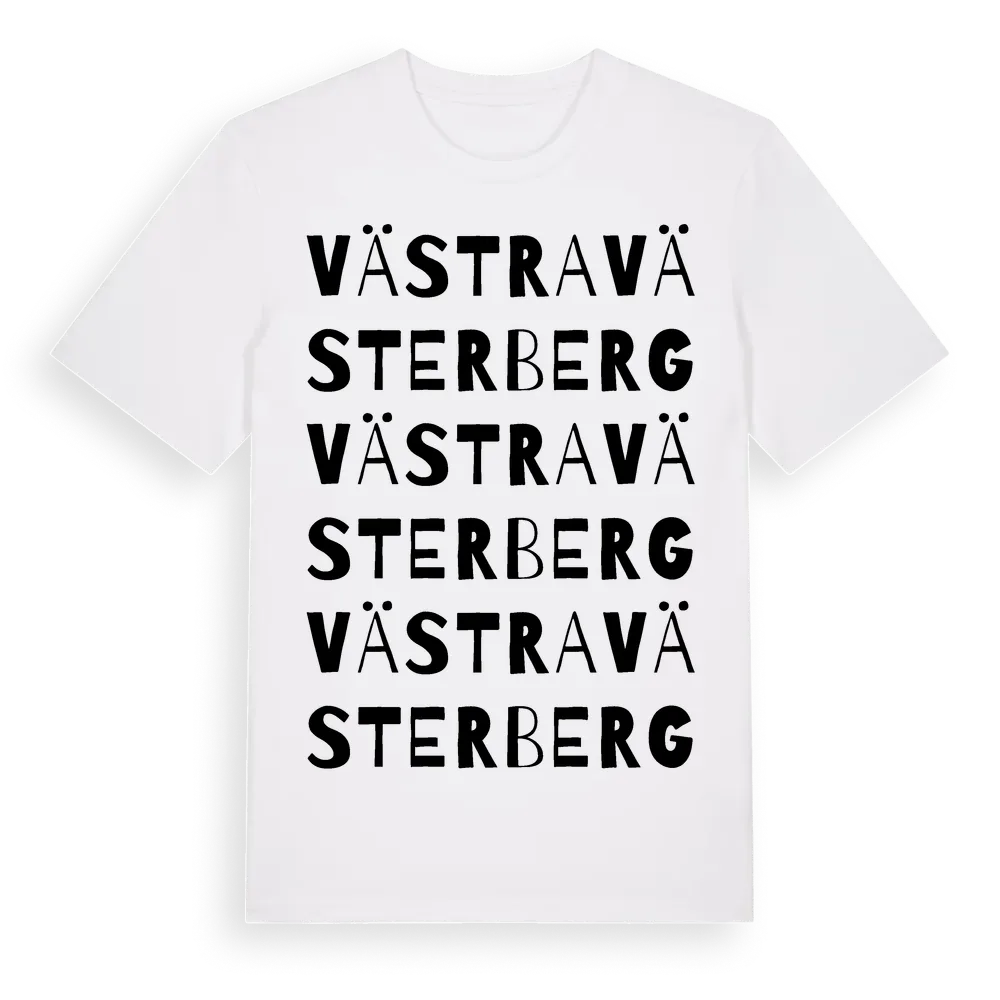 Västra Västerberg ordlek t-shirt är inspirerad av byn Västra Västerberg i Gävleborgs län, Sverige. Tröjan är designad för dig som har en speciell koppling till platsen – oavsett om du bor här, har rötterna här eller bara älskar Västra Västerberg.