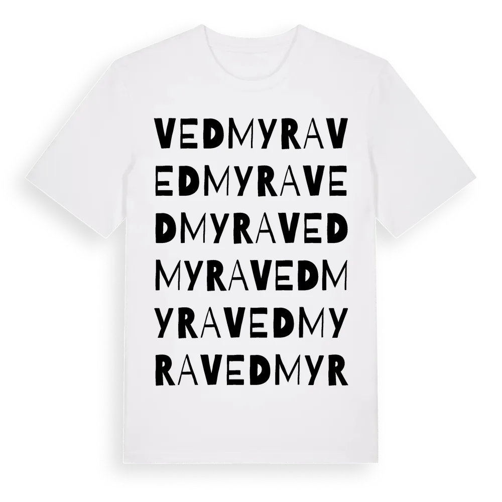 Vedmyra ordlek t-shirt är inspirerad av byn Vedmyra i Gävleborgs län, Sverige. Tröjan är designad för dig som har en speciell koppling till platsen – oavsett om du bor här, har rötterna här eller bara älskar Vedmyra.