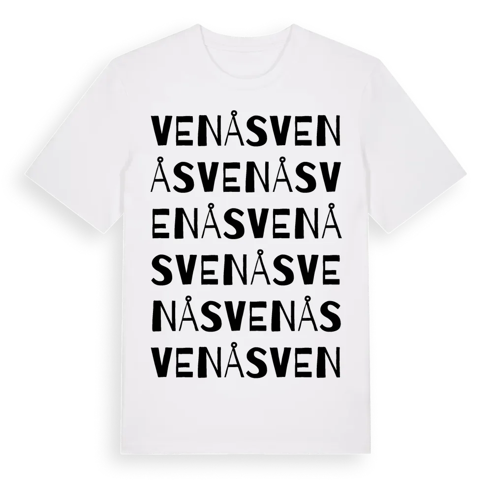 Venås ordlek t-shirt är inspirerad av byn Venås i Gävleborgs län, Sverige. Tröjan är designad för dig som har en speciell koppling till platsen – oavsett om du bor här, har rötterna här eller bara älskar Venås.