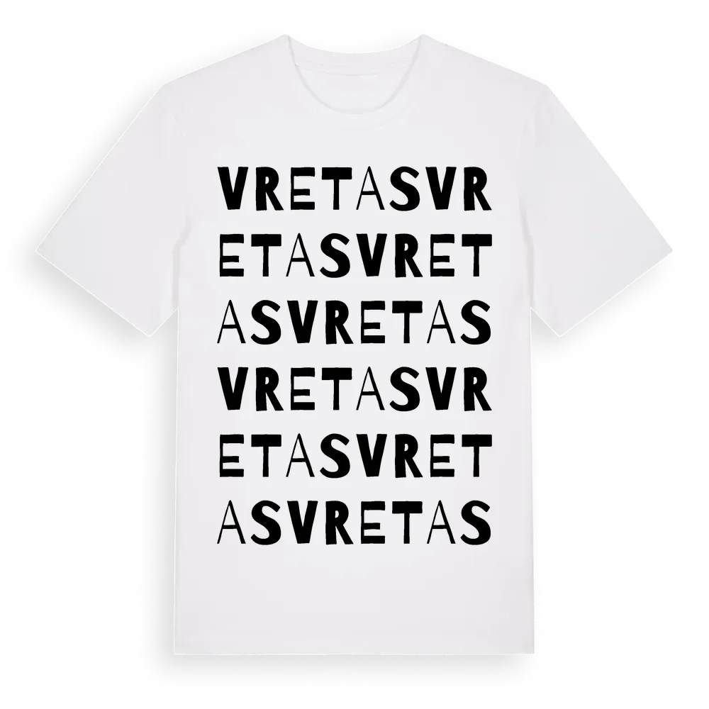Vretas ordlek t-shirt är inspirerad av Vretas i Gävleborgs län, Sverige. Tröjan är designad för dig som har en speciell koppling till platsen – oavsett om du bor här, har rötterna här eller bara älskar Vretas.