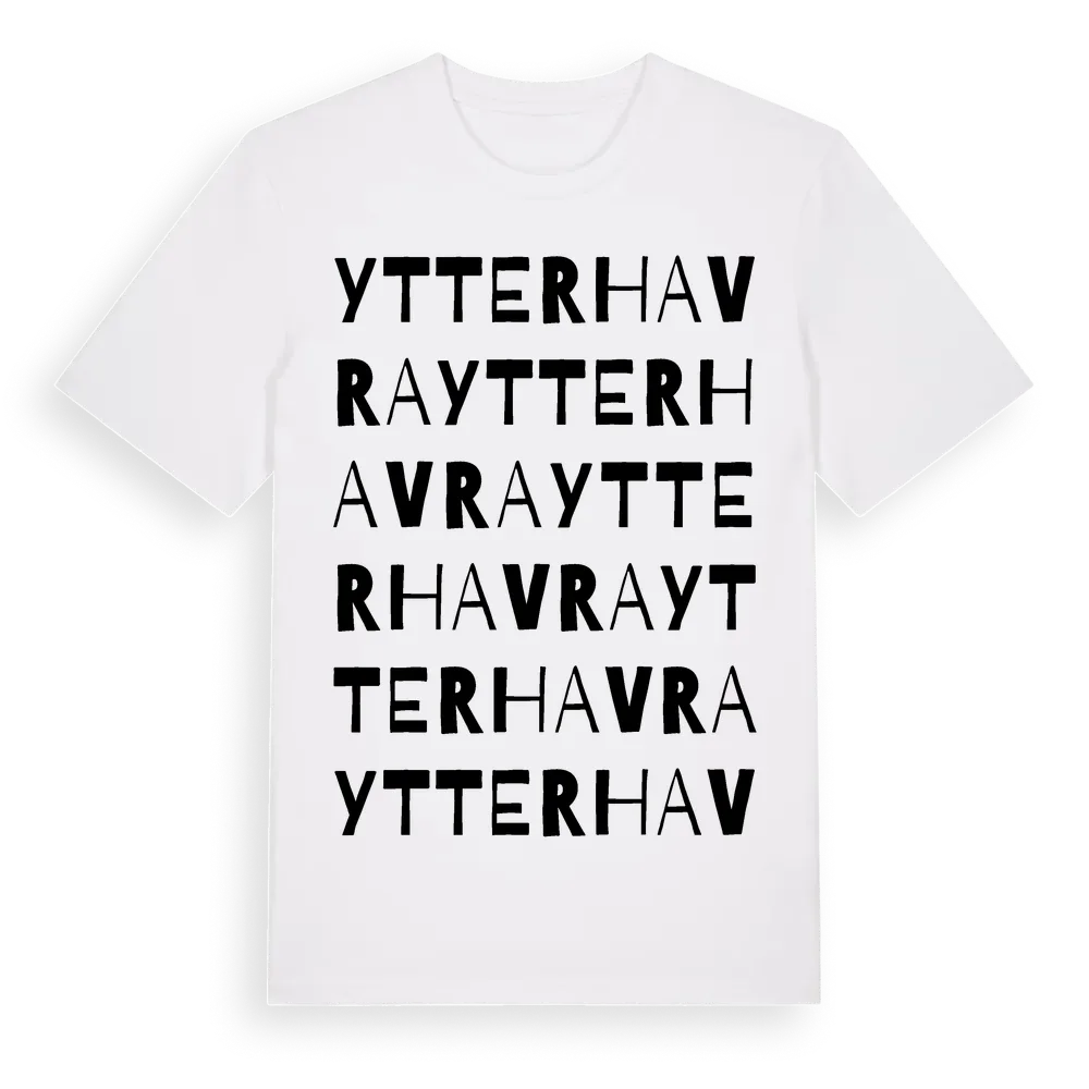 Ytterhavra ordlek t-shirt är inspirerad av byn Ytterhavra i Gävleborgs län, Sverige. Tröjan är designad för dig som har en speciell koppling till platsen – oavsett om du bor här, har rötterna här eller bara älskar Ytterhavra.