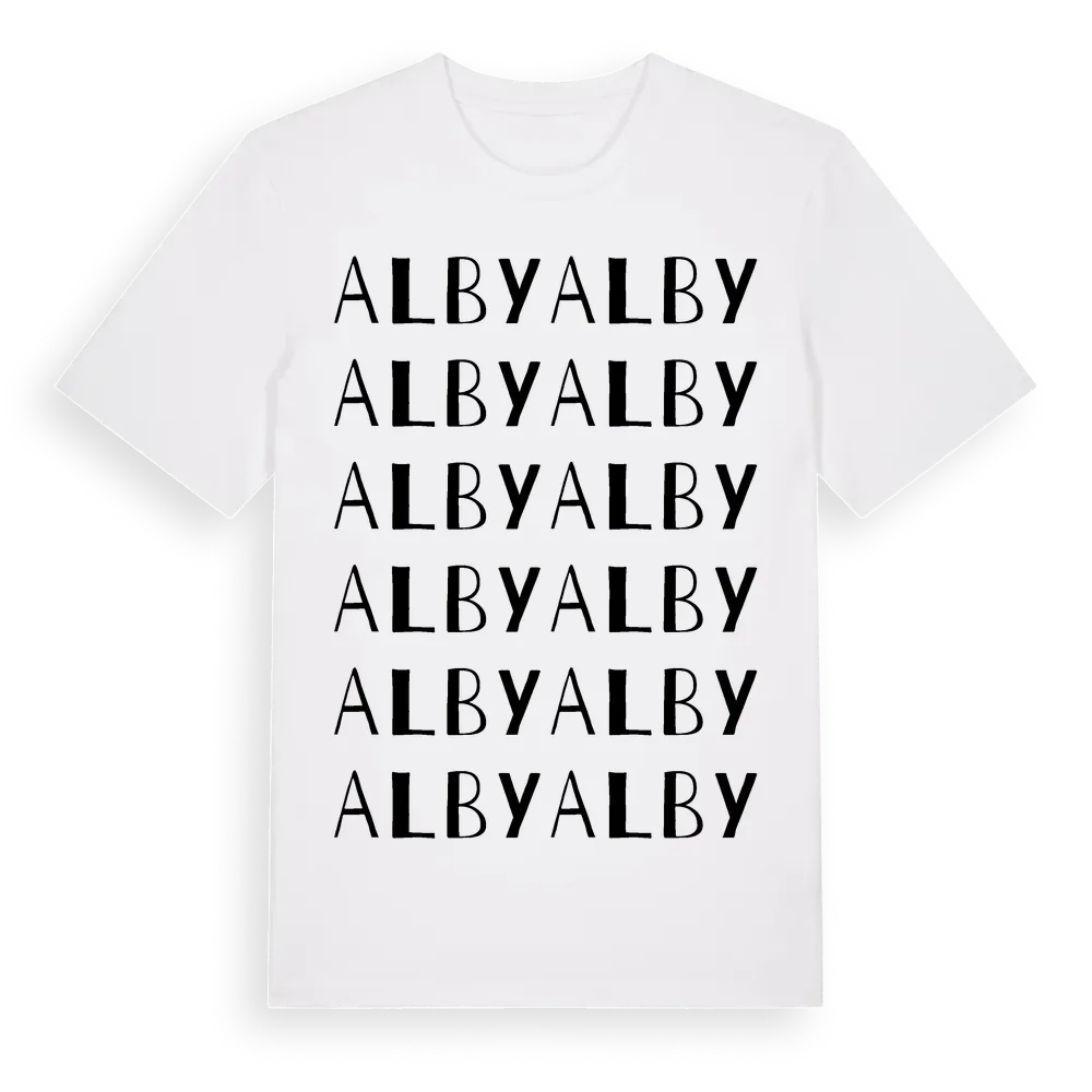 Alby ordlek t-shirt är inspirerad av Alby i Gotlands län, Sverige. Tröjan är designad för dig som har en speciell koppling till platsen – oavsett om du bor här, har rötterna här eller bara älskar Alby.