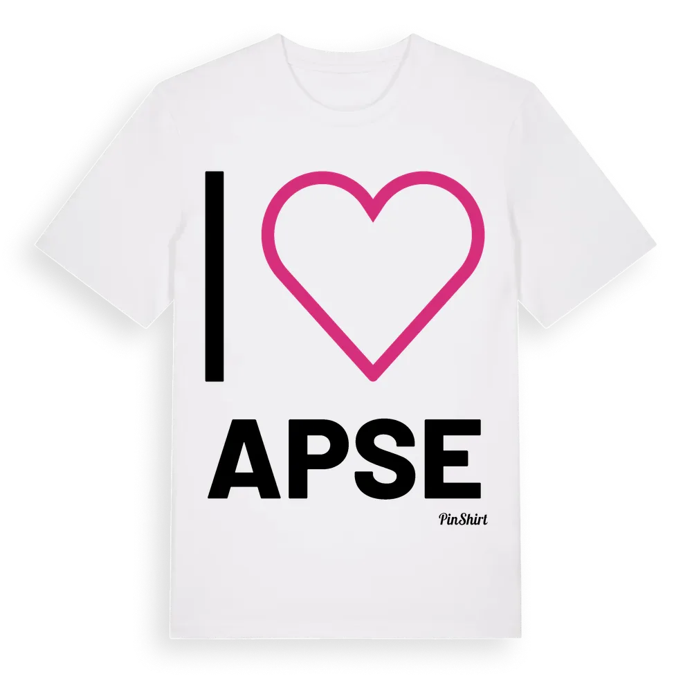 Det klassiska "I ❤ Apse"-motivet i stort format som täcker hela bröstet. För dig som vill visa kärleken till Apse på riktigt. Premium bomull, unisex – från Apse i Gotlands län.