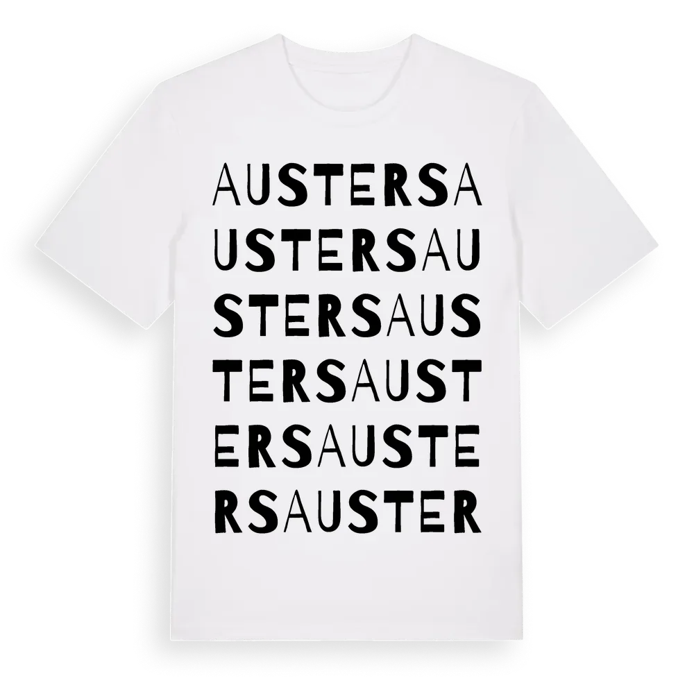 Austers ordlek t-shirt är inspirerad av Austers i Gotlands län, Sverige. Tröjan är designad för dig som har en speciell koppling till platsen – oavsett om du bor här, har rötterna här eller bara älskar Austers.