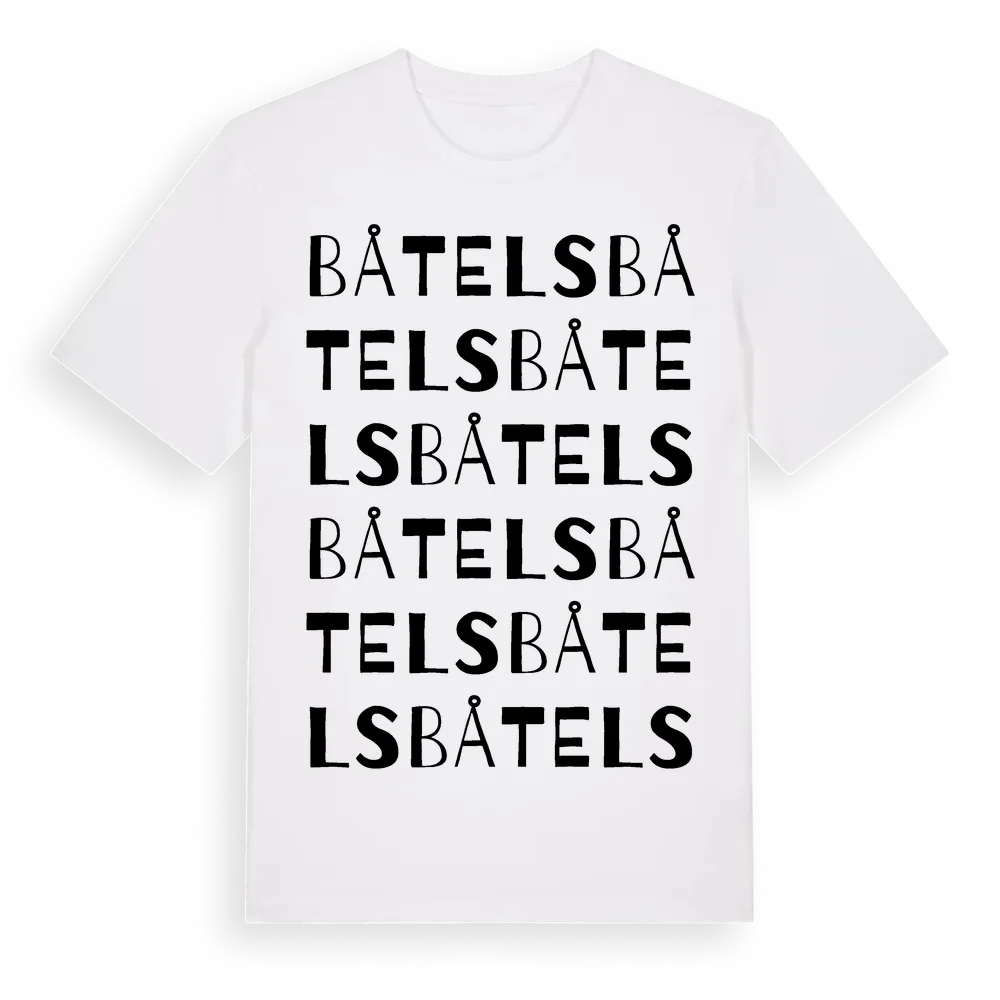 Båtels ordlek t-shirt är inspirerad av Båtels i Gotlands län, Sverige. Tröjan är designad för dig som har en speciell koppling till platsen – oavsett om du bor här, har rötterna här eller bara älskar Båtels.