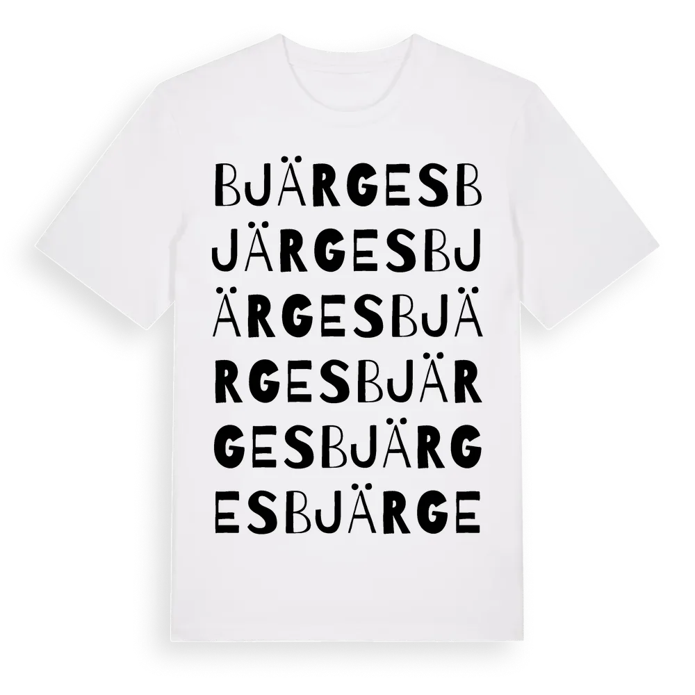 Bjärges ordlek t-shirt är inspirerad av Bjärges i Gotlands län, Sverige. Tröjan är designad för dig som har en speciell koppling till platsen – oavsett om du bor här, har rötterna här eller bara älskar Bjärges.