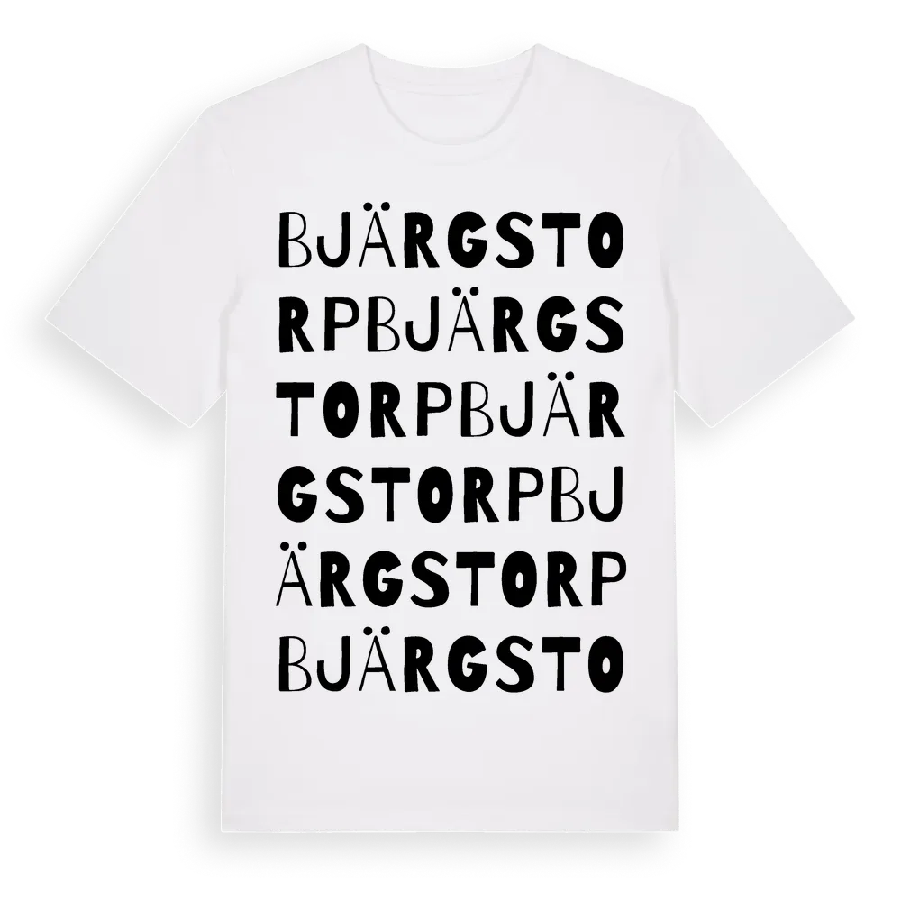 Bjärgstorp ordlek t-shirt är inspirerad av Bjärgstorp i Gotlands län, Sverige. Tröjan är designad för dig som har en speciell koppling till platsen – oavsett om du bor här, har rötterna här eller bara älskar Bjärgstorp.