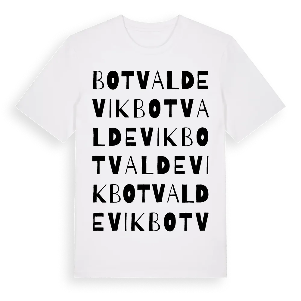 Botvaldevik ordlek t-shirt är inspirerad av Botvaldevik i Gotlands län, Sverige. Tröjan är designad för dig som har en speciell koppling till platsen – oavsett om du bor här, har rötterna här eller bara älskar Botvaldevik.