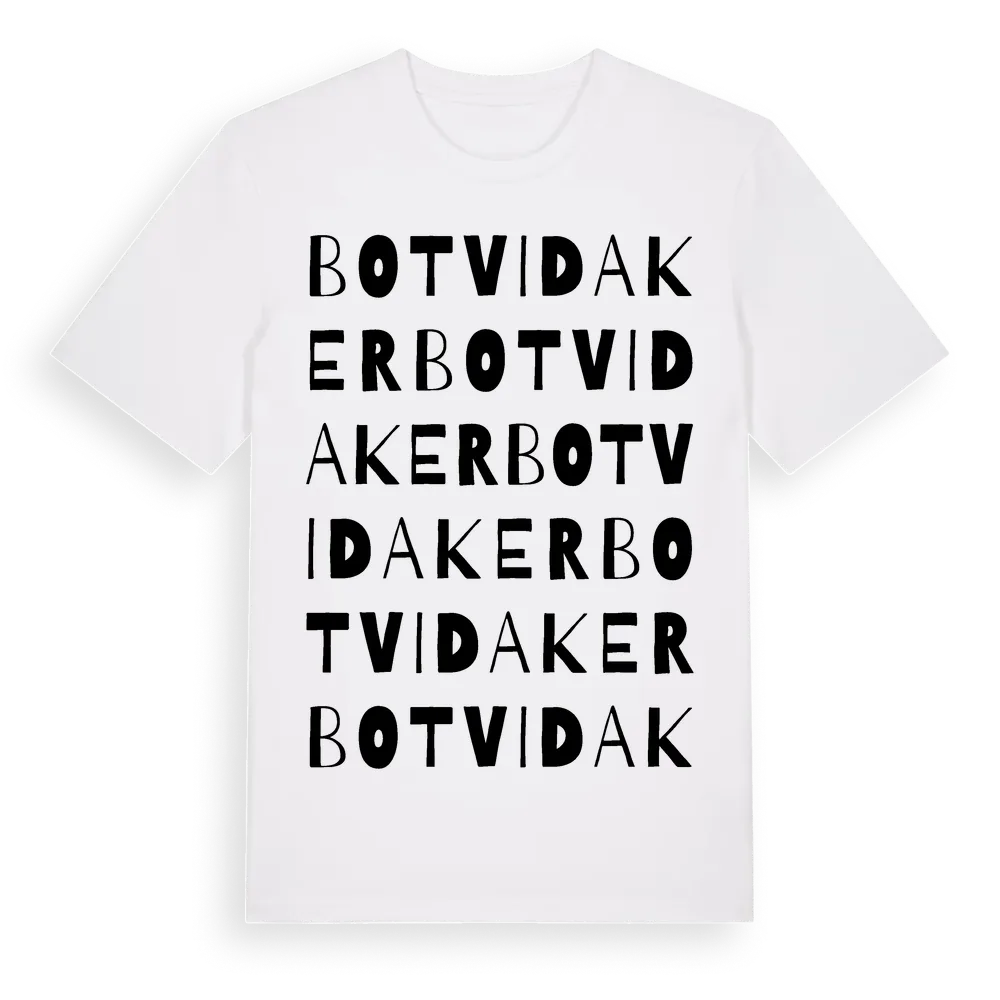 Botvidaker ordlek t-shirt är inspirerad av Botvidaker i Gotlands län, Sverige. Tröjan är designad för dig som har en speciell koppling till platsen – oavsett om du bor här, har rötterna här eller bara älskar Botvidaker.