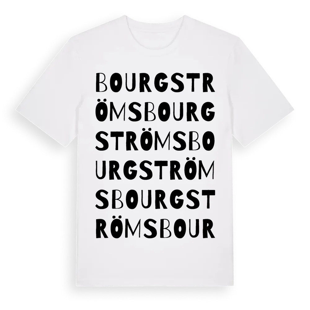 Bourgströms ordlek t-shirt är inspirerad av Bourgströms i Gotlands län, Sverige. Tröjan är designad för dig som har en speciell koppling till platsen – oavsett om du bor här, har rötterna här eller bara älskar Bourgströms.