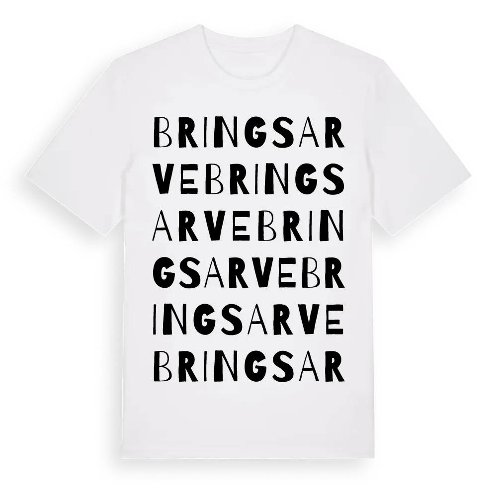 Bringsarve ordlek t-shirt är inspirerad av Bringsarve i Gotlands län, Sverige. Tröjan är designad för dig som har en speciell koppling till platsen – oavsett om du bor här, har rötterna här eller bara älskar Bringsarve.