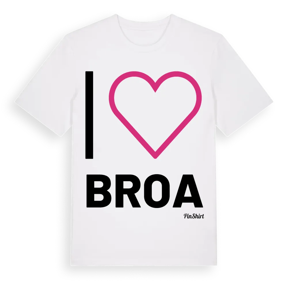 Det klassiska "I ❤ Broa"-motivet i stort format som täcker hela bröstet. För dig som vill visa kärleken till Broa på riktigt. Premium bomull, unisex – från Broa i Gotlands län.