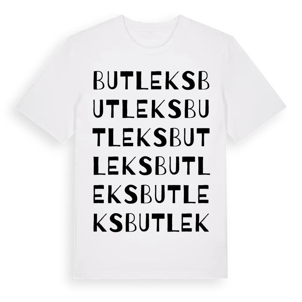 Butleks ordlek t-shirt är inspirerad av Butleks i Gotlands län, Sverige. Tröjan är designad för dig som har en speciell koppling till platsen – oavsett om du bor här, har rötterna här eller bara älskar Butleks.