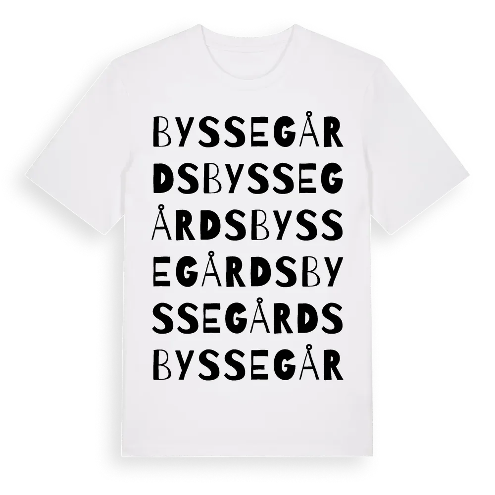 Byssegårds ordlek t-shirt är inspirerad av Byssegårds i Gotlands län, Sverige. Tröjan är designad för dig som har en speciell koppling till platsen – oavsett om du bor här, har rötterna här eller bara älskar Byssegårds.