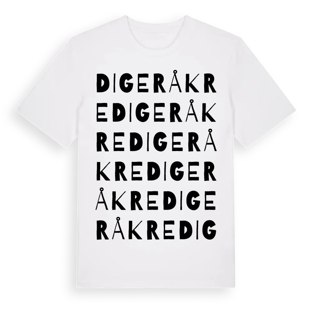 Digeråkre ordlek t-shirt är inspirerad av Digeråkre i Gotlands län, Sverige. Tröjan är designad för dig som har en speciell koppling till platsen – oavsett om du bor här, har rötterna här eller bara älskar Digeråkre.