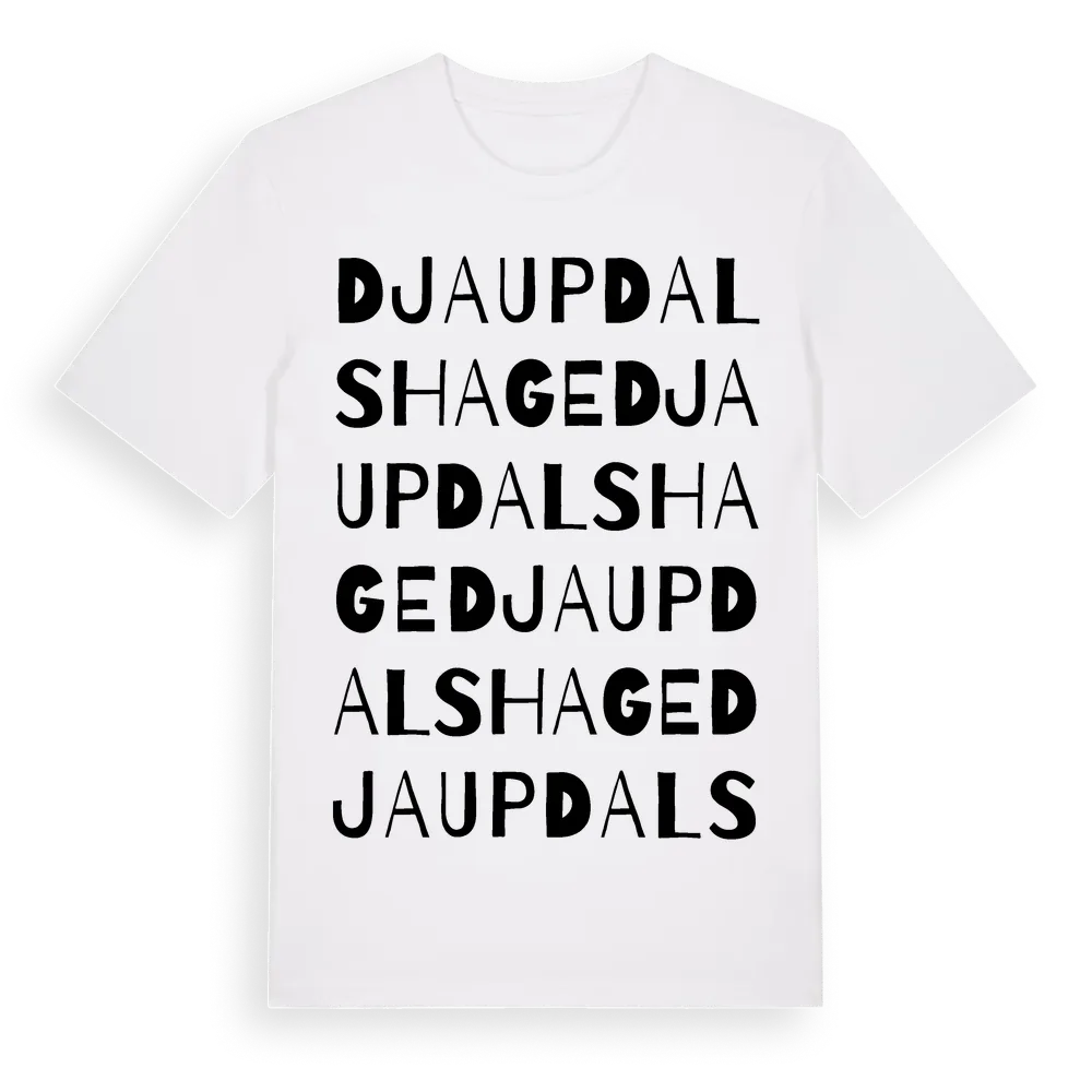 Djaupdalshage ordlek t-shirt är inspirerad av Djaupdalshage i Gotlands län, Sverige. Tröjan är designad för dig som har en speciell koppling till platsen – oavsett om du bor här, har rötterna här eller bara älskar Djaupdalshage.