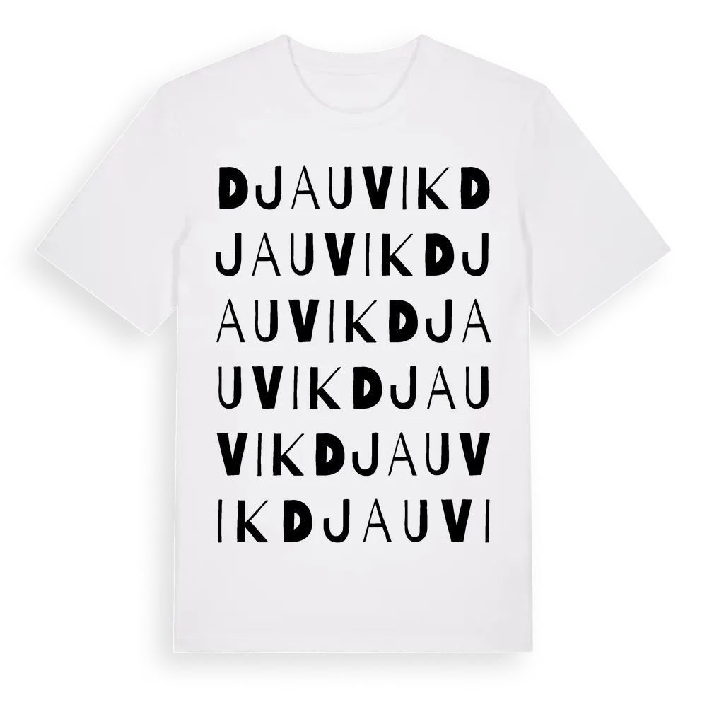 Djauvik ordlek t-shirt är inspirerad av Djauvik i Gotlands län, Sverige. Tröjan är designad för dig som har en speciell koppling till platsen – oavsett om du bor här, har rötterna här eller bara älskar Djauvik.