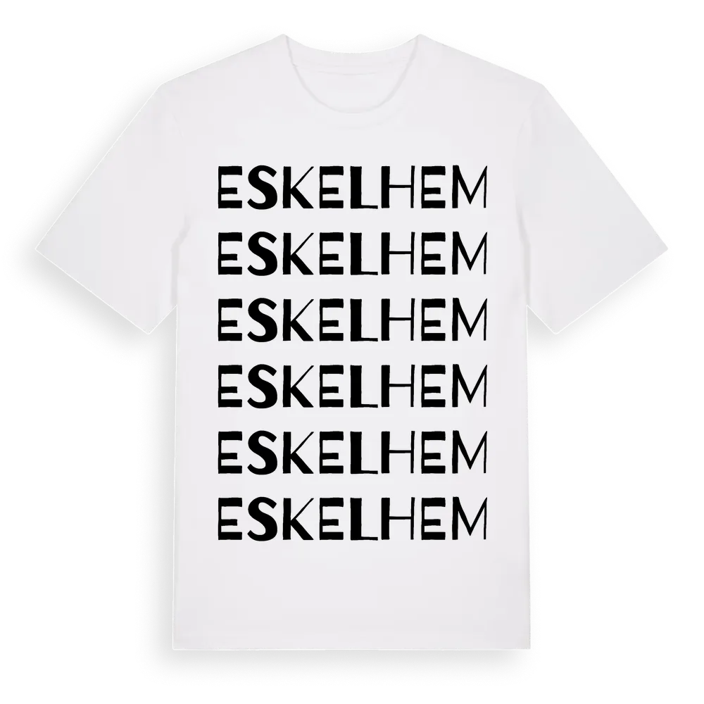 En ordlek byggd på Eskelhems namn. Subtilt och klurig – ett motiv som bara de som verkligen känner platsen fullt ut förstår. Premium bomull, unisex – från byn Eskelhem i Gotlands län.