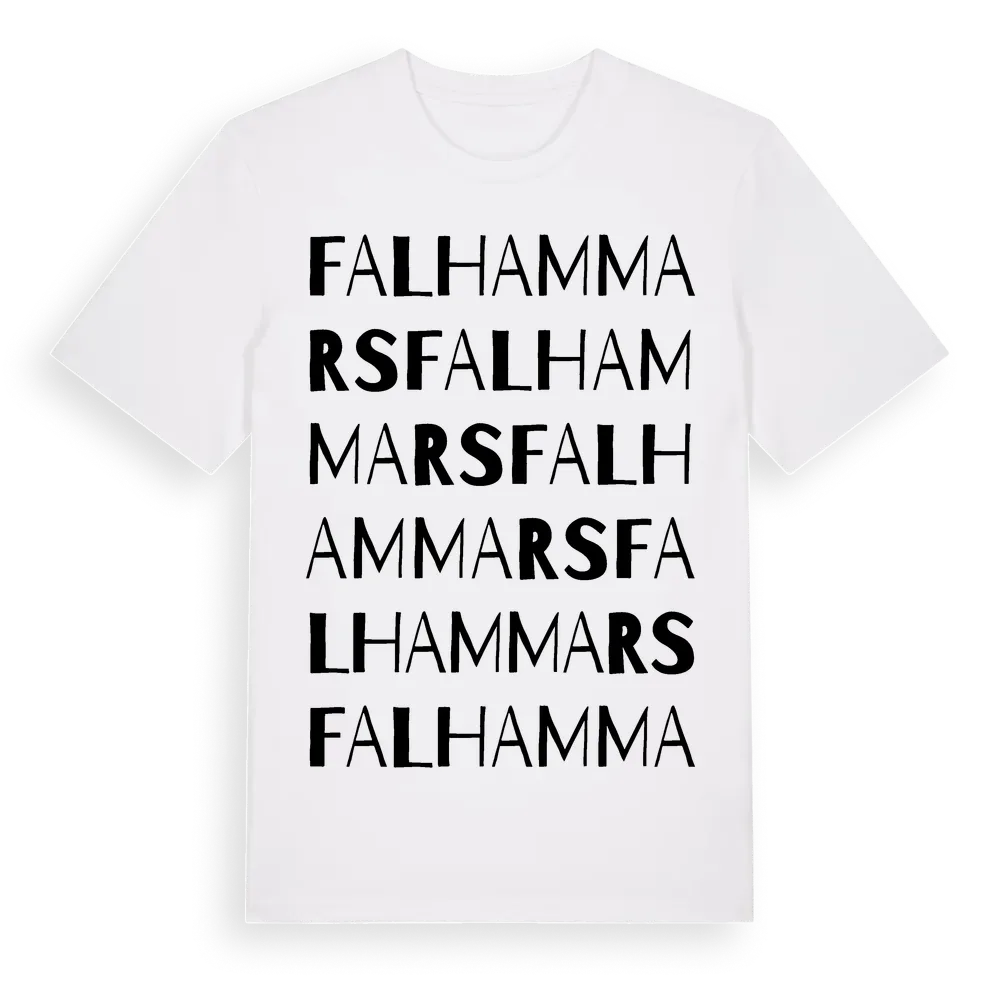Falhammars ordlek t-shirt är inspirerad av Falhammars i Gotlands län, Sverige. Tröjan är designad för dig som har en speciell koppling till platsen – oavsett om du bor här, har rötterna här eller bara älskar Falhammars.