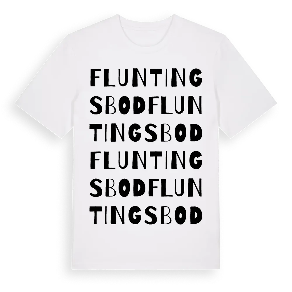 En ordlek byggd på Fluntingsbods namn. Subtilt och klurig – ett motiv som bara de som verkligen känner platsen fullt ut förstår. Premium bomull, unisex – från Fluntingsbod i Gotlands län.