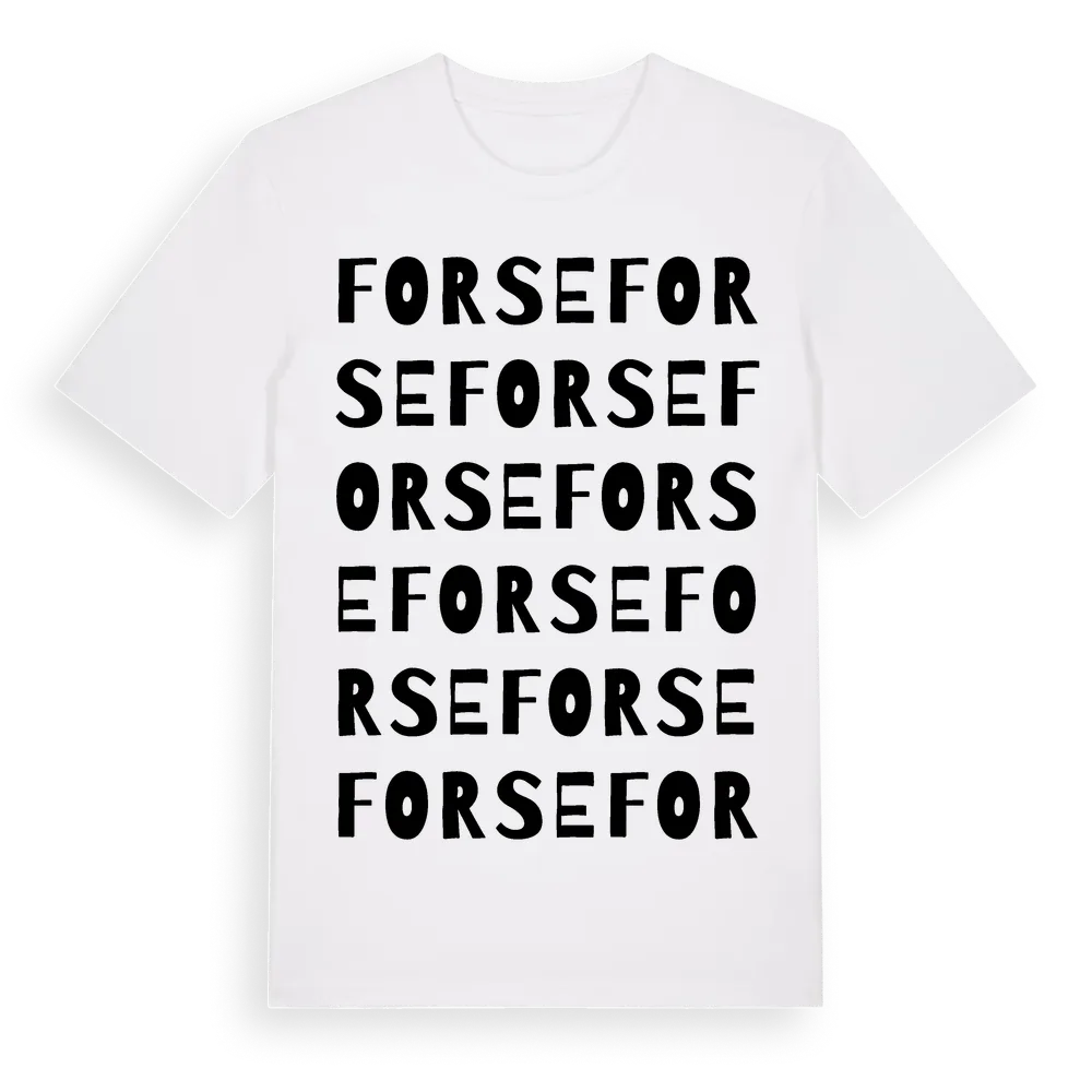 En ordlek byggd på Forses namn. Subtilt och klurig – ett motiv som bara de som verkligen känner platsen fullt ut förstår. Premium bomull, unisex – från Forse i Gotlands län.