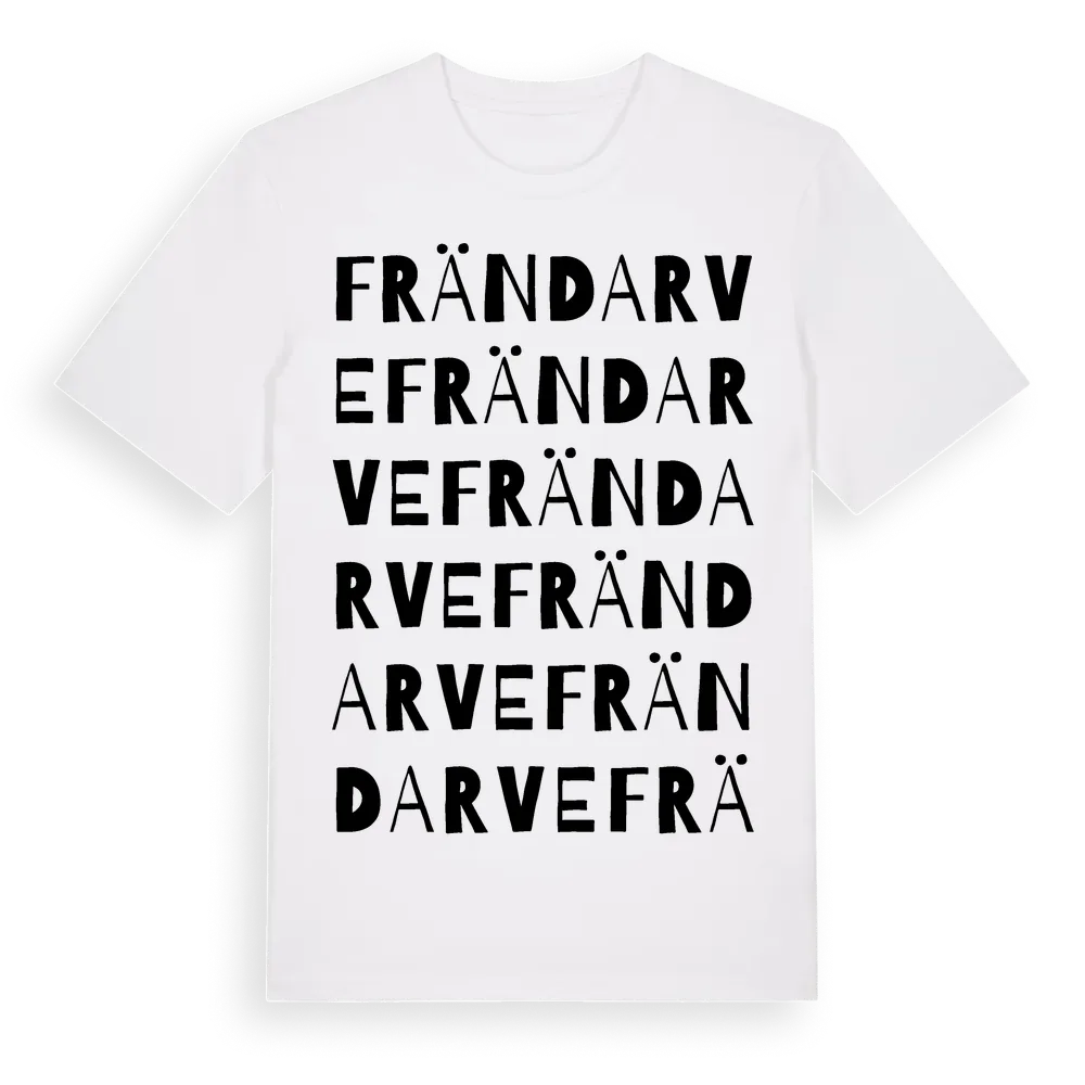 Frändarve ordlek t-shirt är inspirerad av Frändarve i Gotlands län, Sverige. Tröjan är designad för dig som har en speciell koppling till platsen – oavsett om du bor här, har rötterna här eller bara älskar Frändarve.