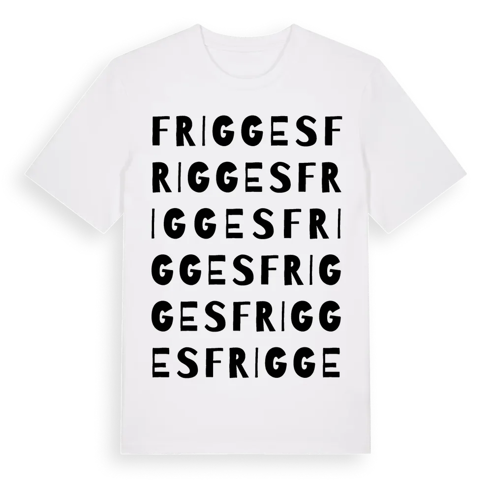 Frigges ordlek t-shirt är inspirerad av Frigges i Gotlands län, Sverige. Tröjan är designad för dig som har en speciell koppling till platsen – oavsett om du bor här, har rötterna här eller bara älskar Frigges.