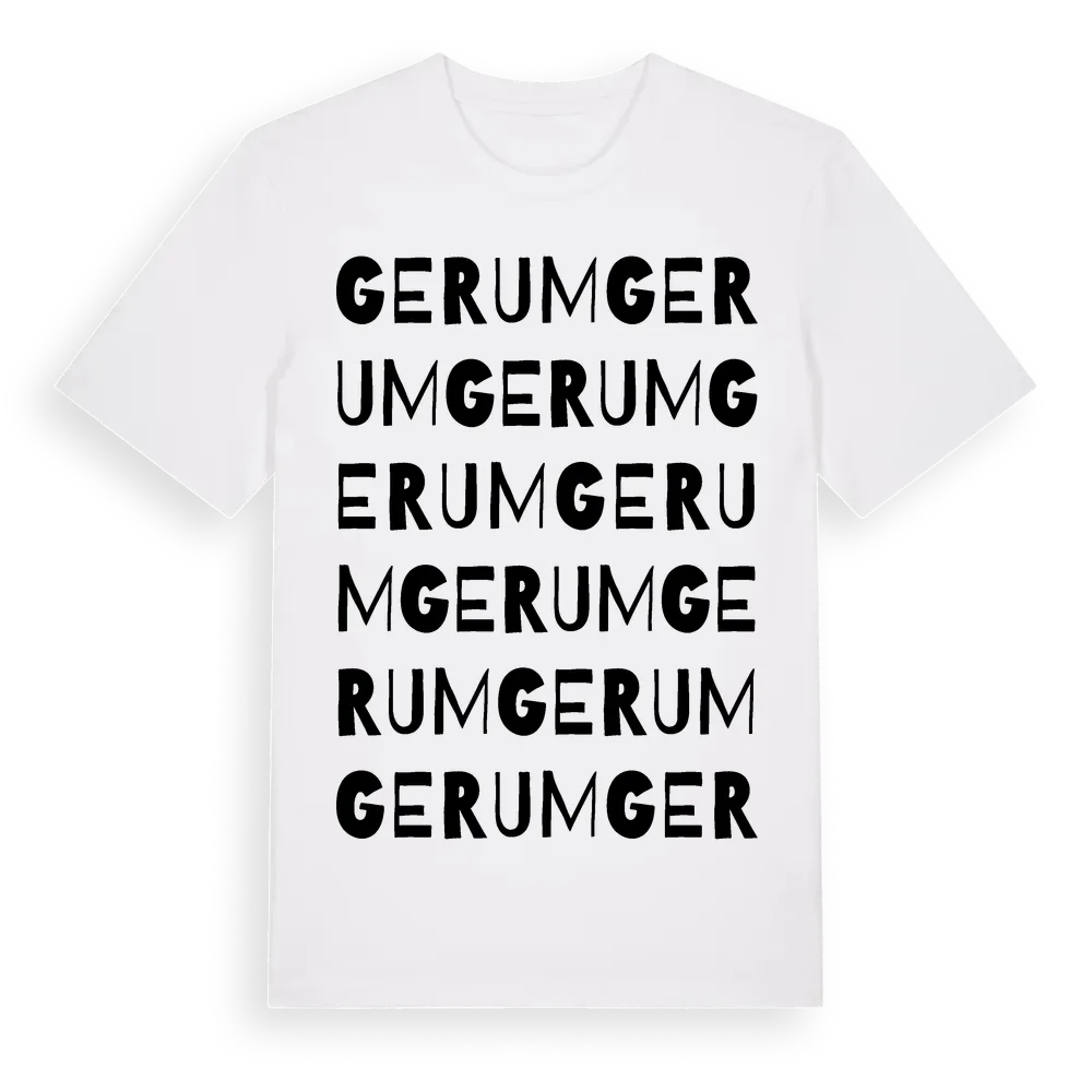 Gerum ordlek t-shirt är inspirerad av Gerum i Gotlands län, Sverige. Tröjan är designad för dig som har en speciell koppling till platsen – oavsett om du bor här, har rötterna här eller bara älskar Gerum.