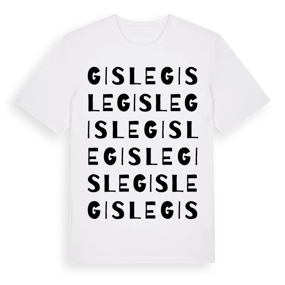 Gisle ordlek t-shirt är inspirerad av Gisle i Gotlands län, Sverige. Tröjan är designad för dig som har en speciell koppling till platsen – oavsett om du bor här, har rötterna här eller bara älskar Gisle.