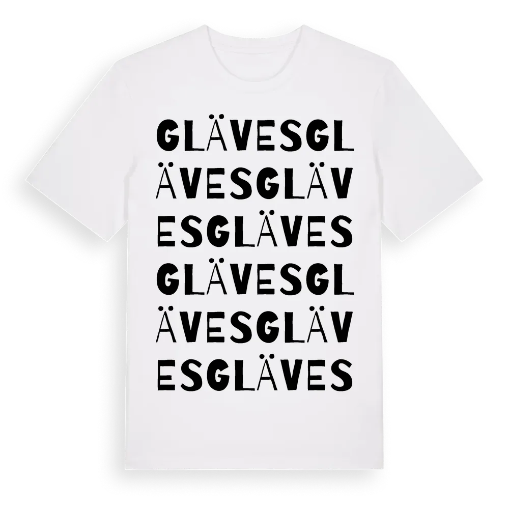 En ordlek byggd på Glävess namn. Subtilt och klurig – ett motiv som bara de som verkligen känner platsen fullt ut förstår. Premium bomull, unisex – från Gläves i Gotlands län.