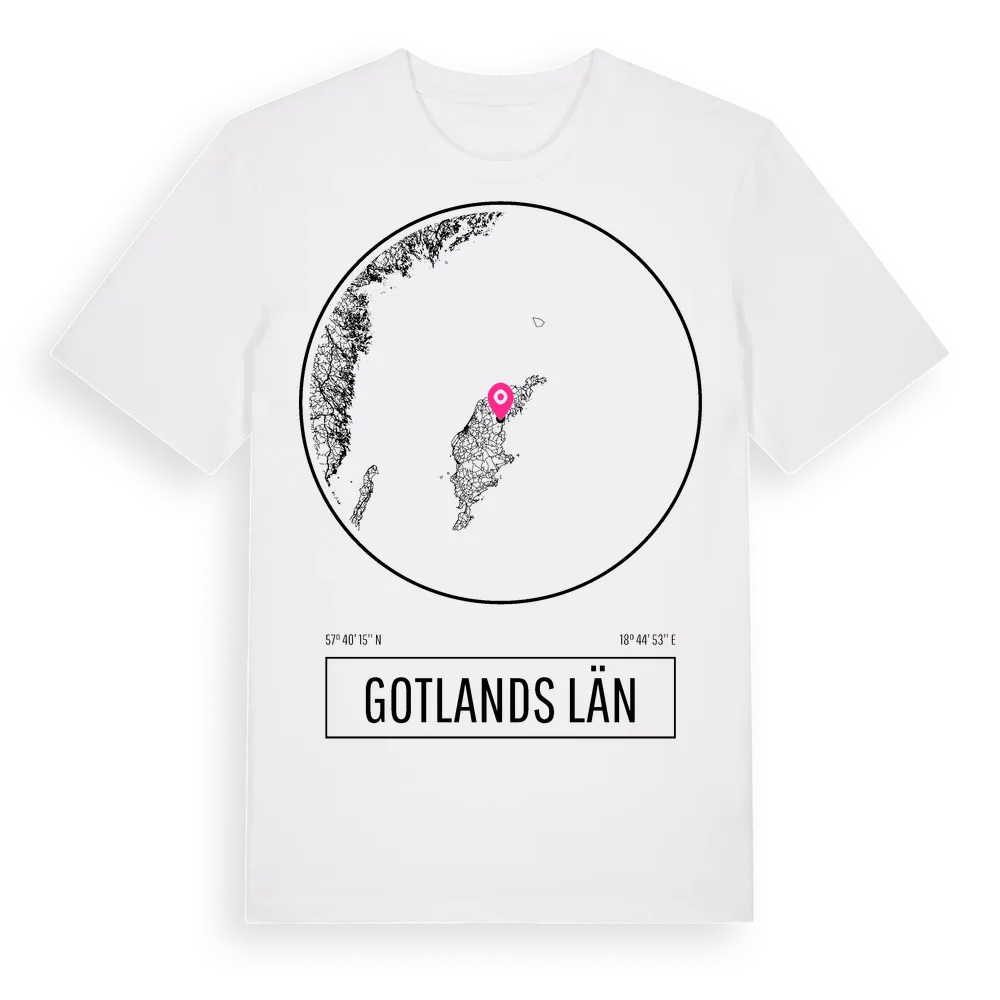 Gotlands Län t-shirt är inspirerad av Gotlands Län i Gotlands län, Sverige. Tröjan är designad för dig som har en speciell koppling till platsen – oavsett om du bor här, har rötterna här eller bara älskar Gotlands Län.