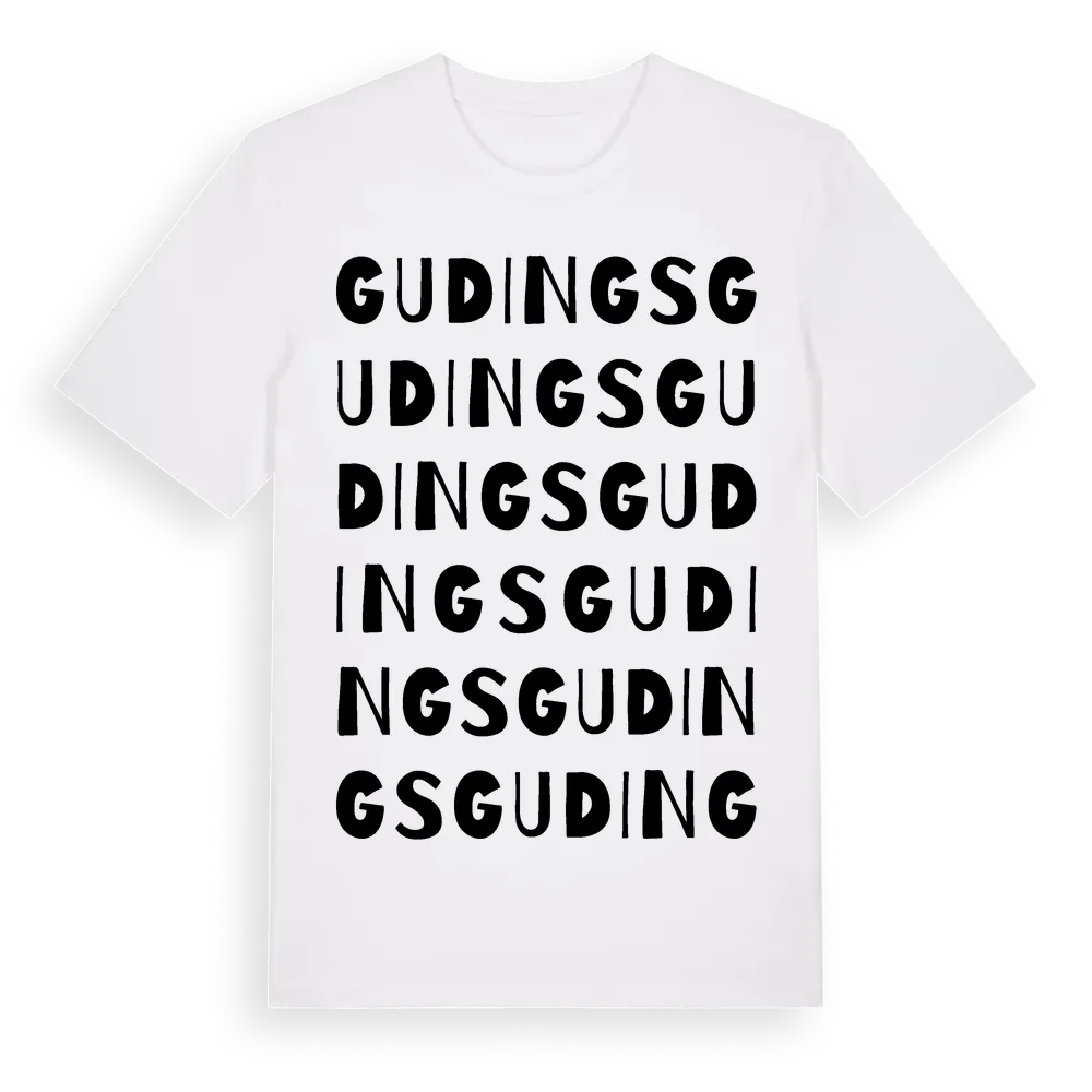 Gudings ordlek t-shirt är inspirerad av Gudings i Gotlands län, Sverige. Tröjan är designad för dig som har en speciell koppling till platsen – oavsett om du bor här, har rötterna här eller bara älskar Gudings.