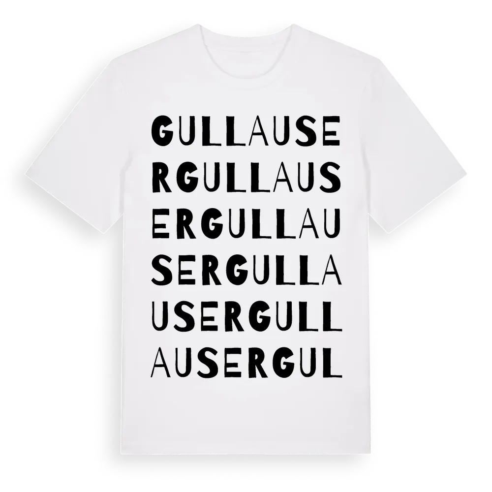 Gullauser ordlek t-shirt är inspirerad av Gullauser i Gotlands län, Sverige. Tröjan är designad för dig som har en speciell koppling till platsen – oavsett om du bor här, har rötterna här eller bara älskar Gullauser.