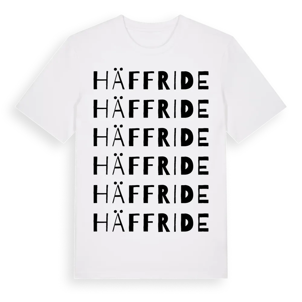 Häffride ordlek t-shirt är inspirerad av Häffride i Gotlands län, Sverige. Tröjan är designad för dig som har en speciell koppling till platsen – oavsett om du bor här, har rötterna här eller bara älskar Häffride.