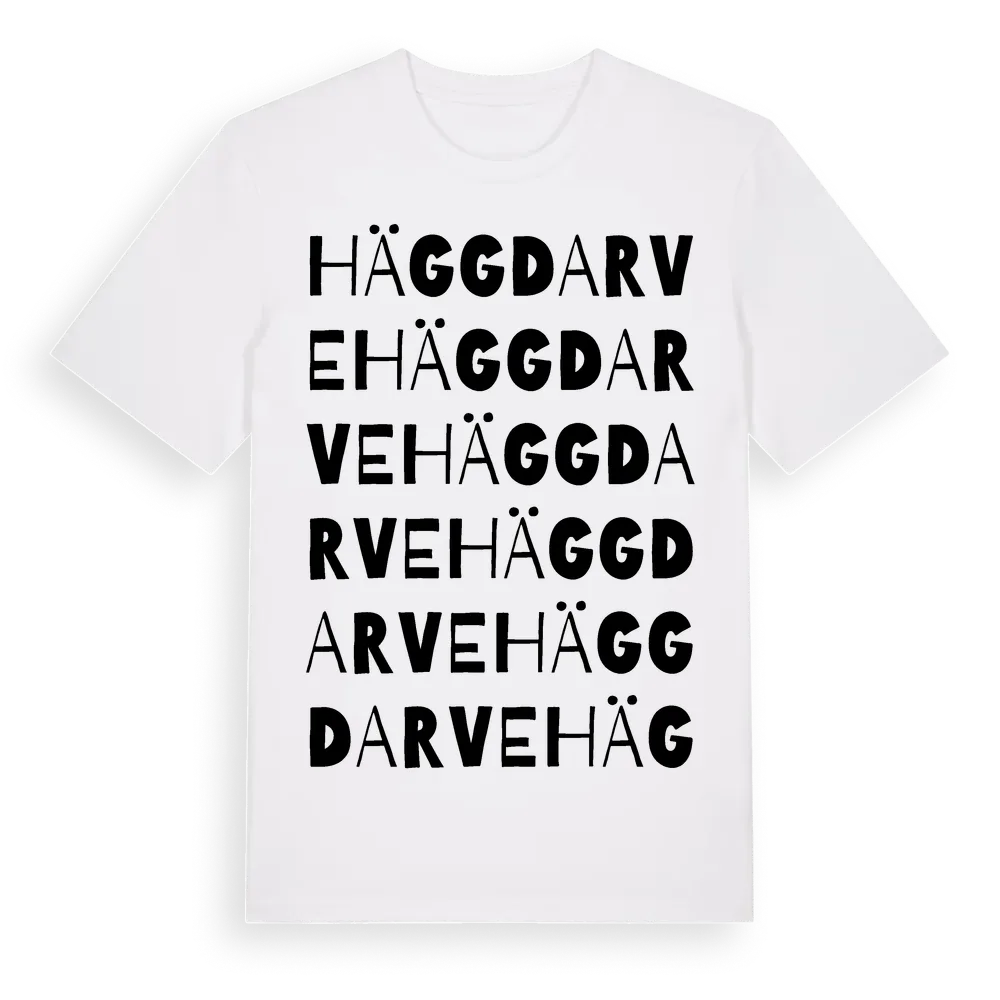 Häggdarve ordlek t-shirt är inspirerad av Häggdarve i Gotlands län, Sverige. Tröjan är designad för dig som har en speciell koppling till platsen – oavsett om du bor här, har rötterna här eller bara älskar Häggdarve.