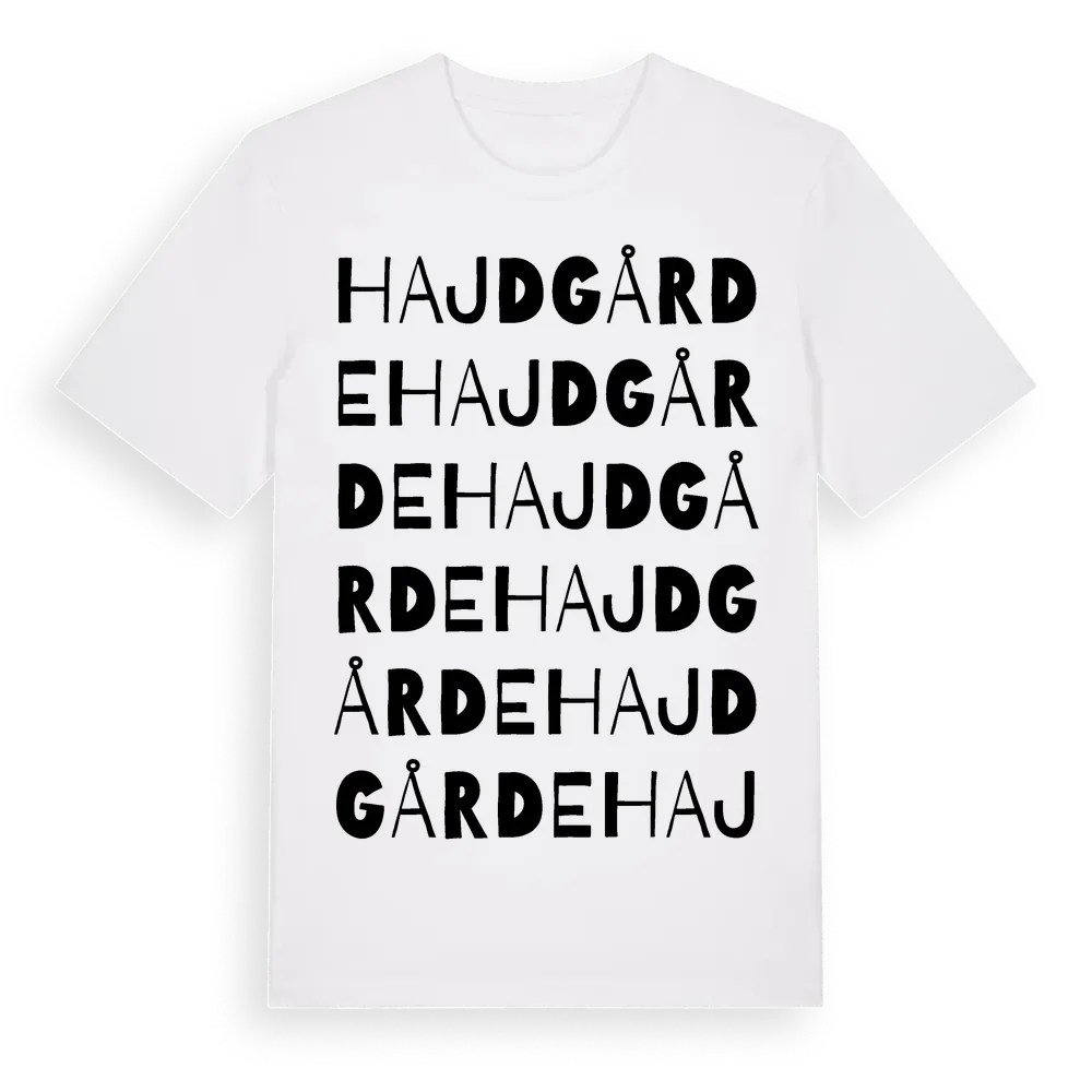 Hajdgårde ordlek t-shirt är inspirerad av Hajdgårde i Gotlands län, Sverige. Tröjan är designad för dig som har en speciell koppling till platsen – oavsett om du bor här, har rötterna här eller bara älskar Hajdgårde.