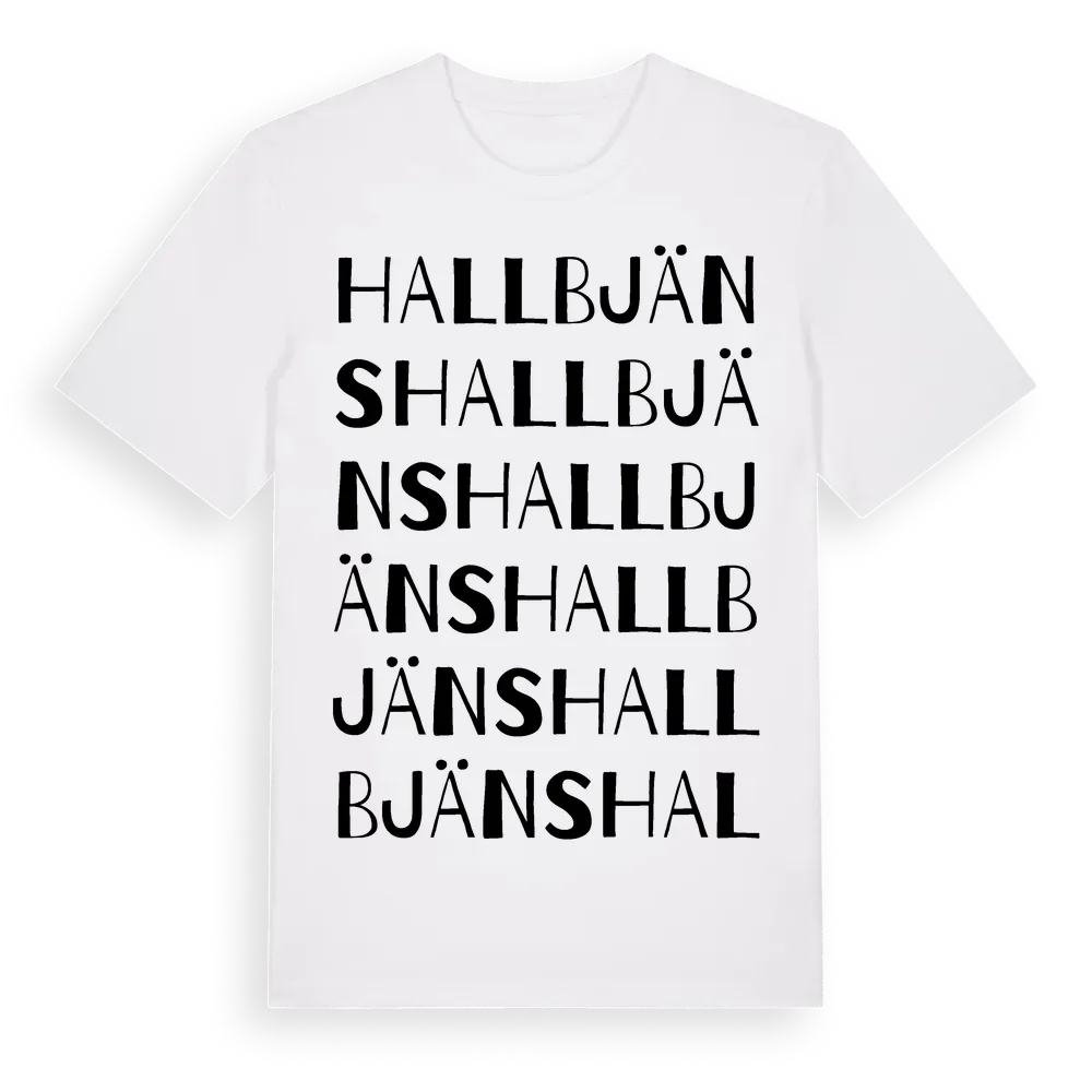 Hallbjäns ordlek t-shirt är inspirerad av Hallbjäns i Gotlands län, Sverige. Tröjan är designad för dig som har en speciell koppling till platsen – oavsett om du bor här, har rötterna här eller bara älskar Hallbjäns.