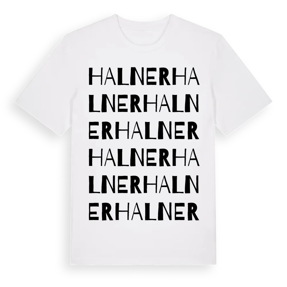 Halner ordlek t-shirt är inspirerad av Halner i Gotlands län, Sverige. Tröjan är designad för dig som har en speciell koppling till platsen – oavsett om du bor här, har rötterna här eller bara älskar Halner.