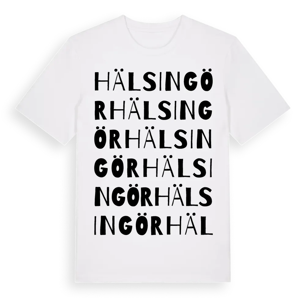 Hälsingör ordlek t-shirt är inspirerad av Hälsingör i Gotlands län, Sverige. Tröjan är designad för dig som har en speciell koppling till platsen – oavsett om du bor här, har rötterna här eller bara älskar Hälsingör.