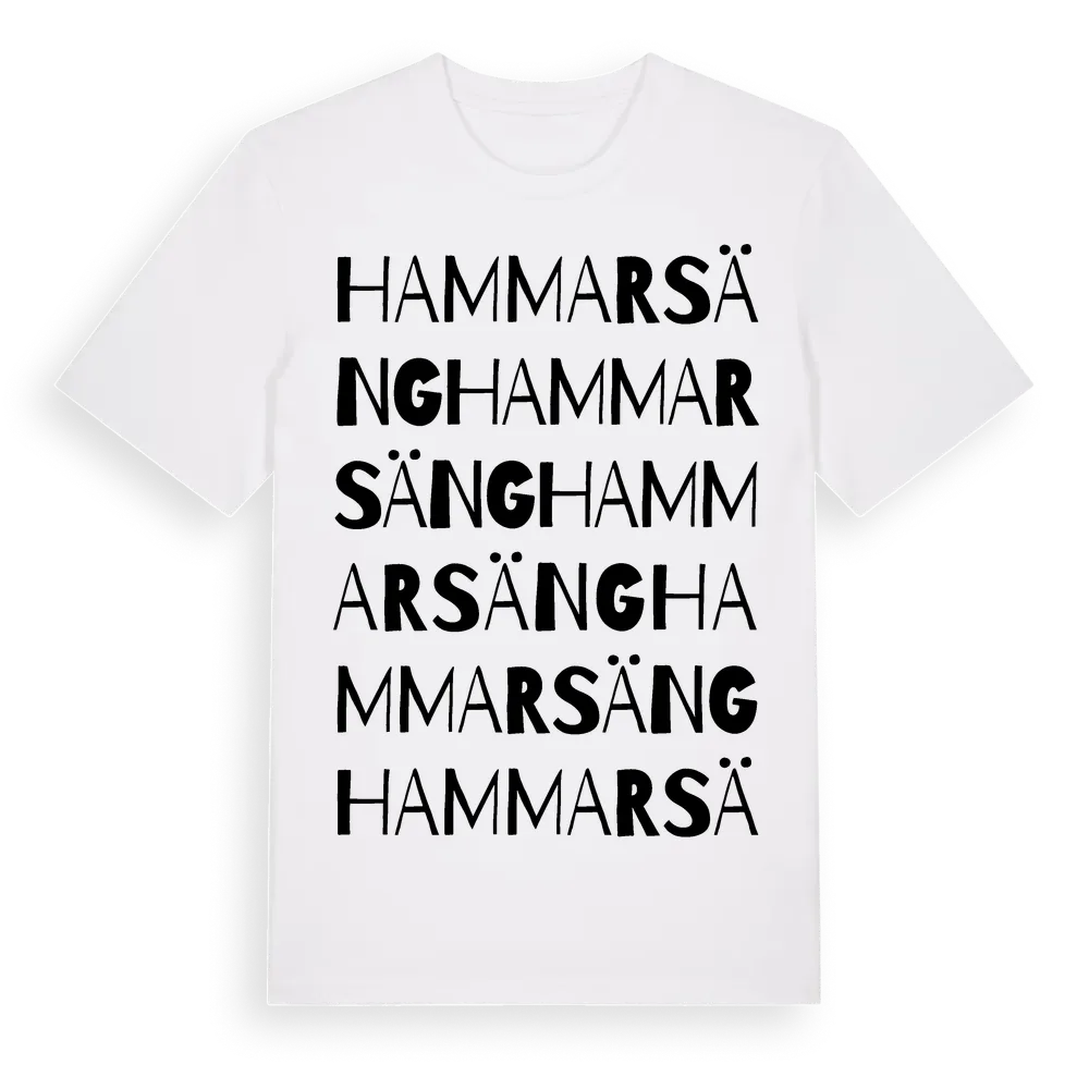 Hammarsäng ordlek t-shirt är inspirerad av Hammarsäng i Gotlands län, Sverige. Tröjan är designad för dig som har en speciell koppling till platsen – oavsett om du bor här, har rötterna här eller bara älskar Hammarsäng.