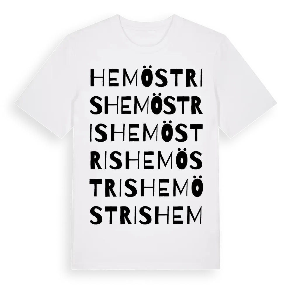 Hemöstris ordlek t-shirt är inspirerad av Hemöstris i Gotlands län, Sverige. Tröjan är designad för dig som har en speciell koppling till platsen – oavsett om du bor här, har rötterna här eller bara älskar Hemöstris.