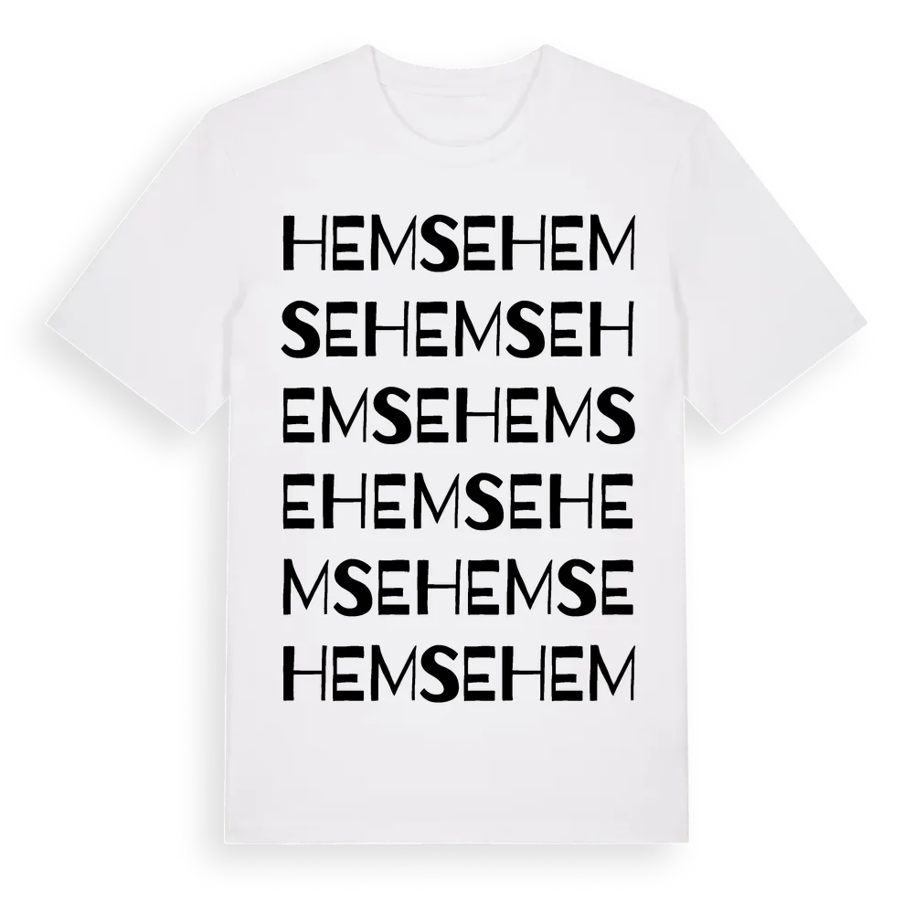 En ordlek byggd på Hemses namn. Subtilt och klurig – ett motiv som bara de som verkligen känner platsen fullt ut förstår. Premium bomull, unisex – från byn Hemse i Gotlands län.
