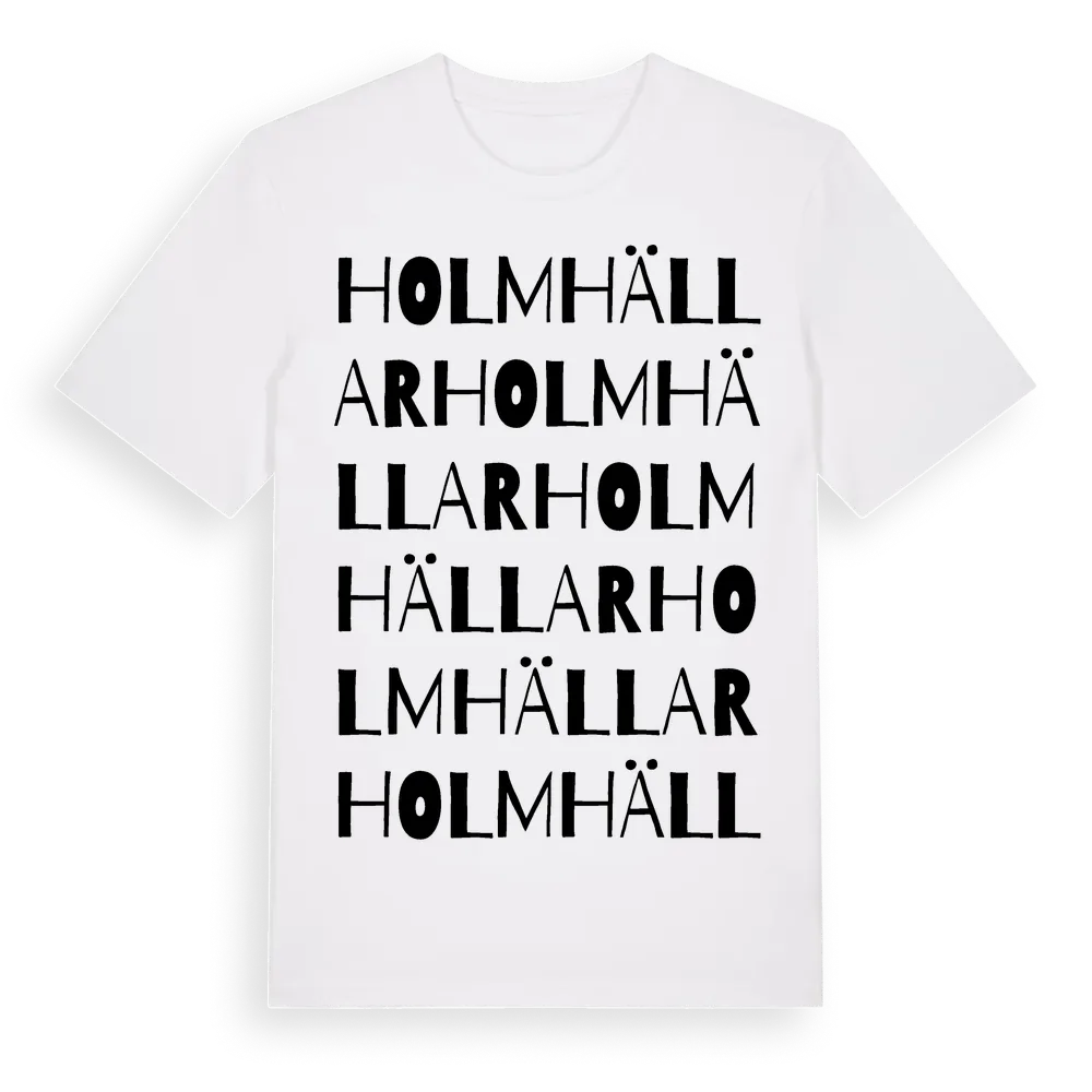Holmhällar ordlek t-shirt är inspirerad av byn Holmhällar i Gotlands län, Sverige. Tröjan är designad för dig som har en speciell koppling till platsen – oavsett om du bor här, har rötterna här eller bara älskar Holmhällar.