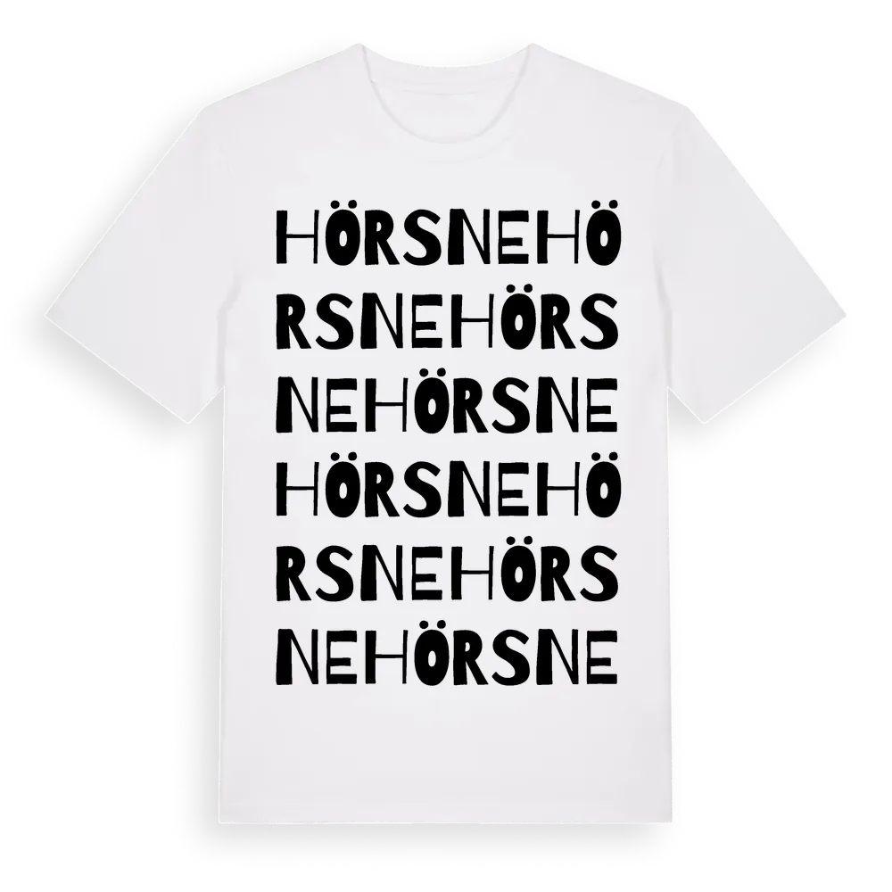 En ordlek byggd på Hörsnes namn. Subtilt och klurig – ett motiv som bara de som verkligen känner platsen fullt ut förstår. Premium bomull, unisex – från byn Hörsne i Gotlands län.